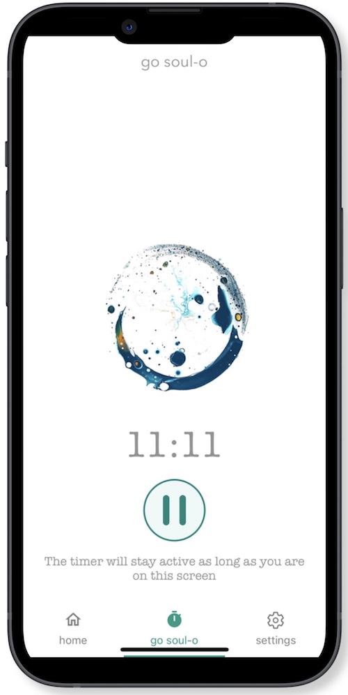 All centred soul moments lead to the Go-Soul-O timer which is a space where you can practice different centred soul moments or any chosen style of meditation by yourself – by guiding yourself. This is really the place that I want people to get to, to be able to hold space and connect to stillness and wisdom within.